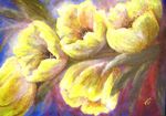 Schilderijen van tulpen in acrylverf, al of niet met toevoeging van diverse materialen voor een 3-dimensionaal effect