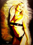 2008buikdanseres die slechts deels geschilderd is op een goud/rode achtergrond. Eind oktober pas te koop wegens deelname aan Palm Art Awards 21 aug tot 17 okt 2009.